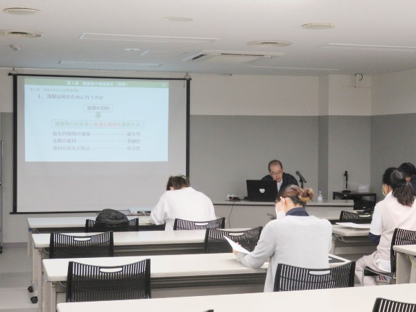 渡辺教育研修対策委員長の挨拶の後、宮城県環境生活部食と暮らしの安全推進課環境衛生班の大内技術主任主査より建築物衛生法についてご講義いただきました。