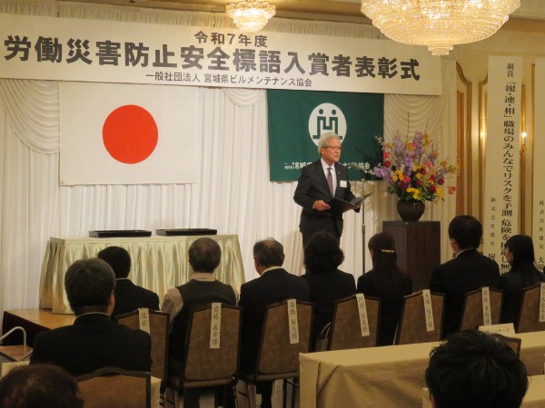 大久保会長の挨拶の後、来賓の宮城労働局労働基準部健康安全課課長二木多賀子様、宮城県環境生活部食と暮らしの安全推進課課長梶原光弘様よりご祝辞を頂戴いたしました。