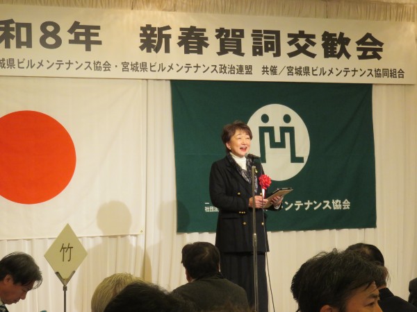 新年の挨拶や新たな交流が広がる中、新規賛助会員アイリスオーヤマ㈱様をご紹介、また参議院議員橋本聖子様、和田政宗様、日頃よりご尽力をいただいている先生方を代表し桜井充様よりご挨拶をいただき大変賑々しい有意義な会となりました。そして㈱リンレイ部長武村様の中締めでお開きとなりました。