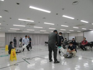 1時間の学科講習(清掃の基礎について)の後、実技講習でポリッシャーを行いました。