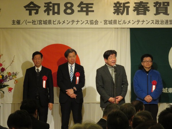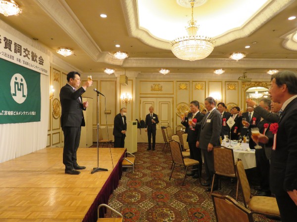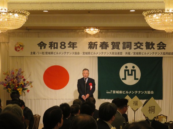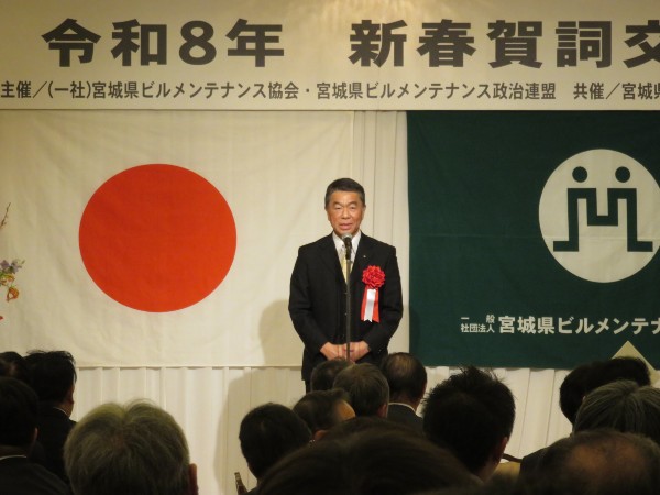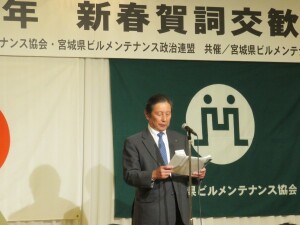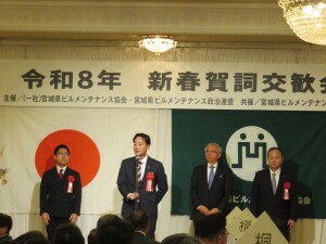 宮城県協会をはじめ、三団体による平成26年新春賀詞交歓会が、江陽グランドホテルにおいて開催されました。鈴木良夫会長の挨拶、ご来賓お二方よりご祝辞を頂戴した後、千葉寛一理事の音頭で乾杯を行い、おたがいの新たな年のスタートを力強く宣言しました。